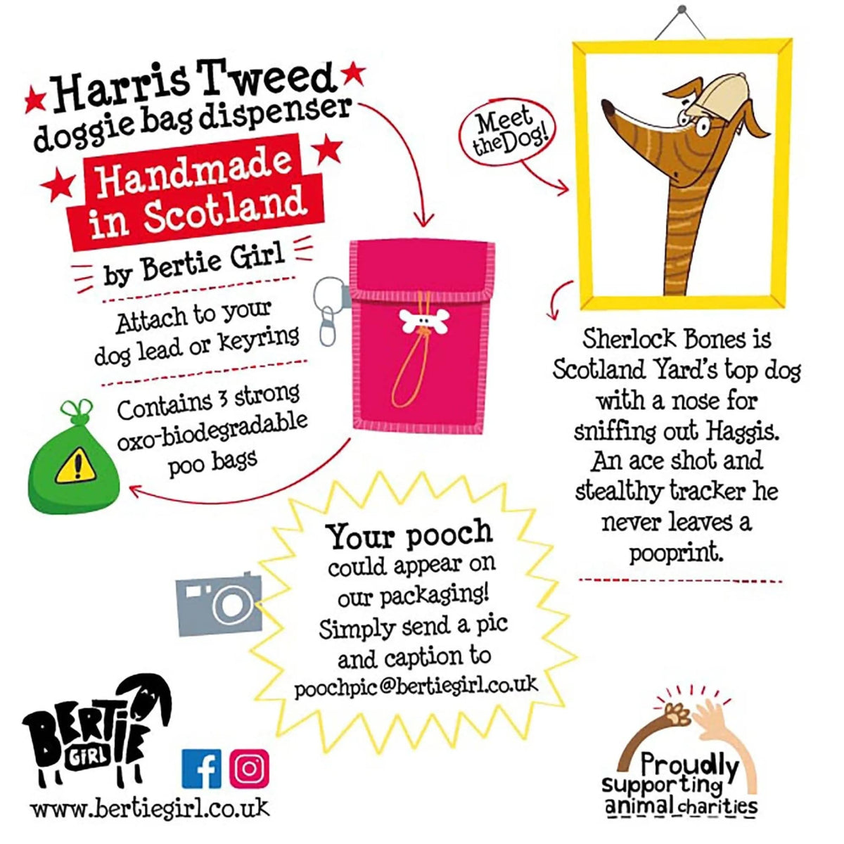 Whether you are strolling through the picturesque streets of your city or embarking on an adventure in nature, the Harris Tweed Holder adds a touch of culture and comfort to your daily routine. Turn cleaning up after your dog into a moment of pride and style.Add this holder to your collection today and enjoy the combination of practical possibilities and the unique Scottish flair.