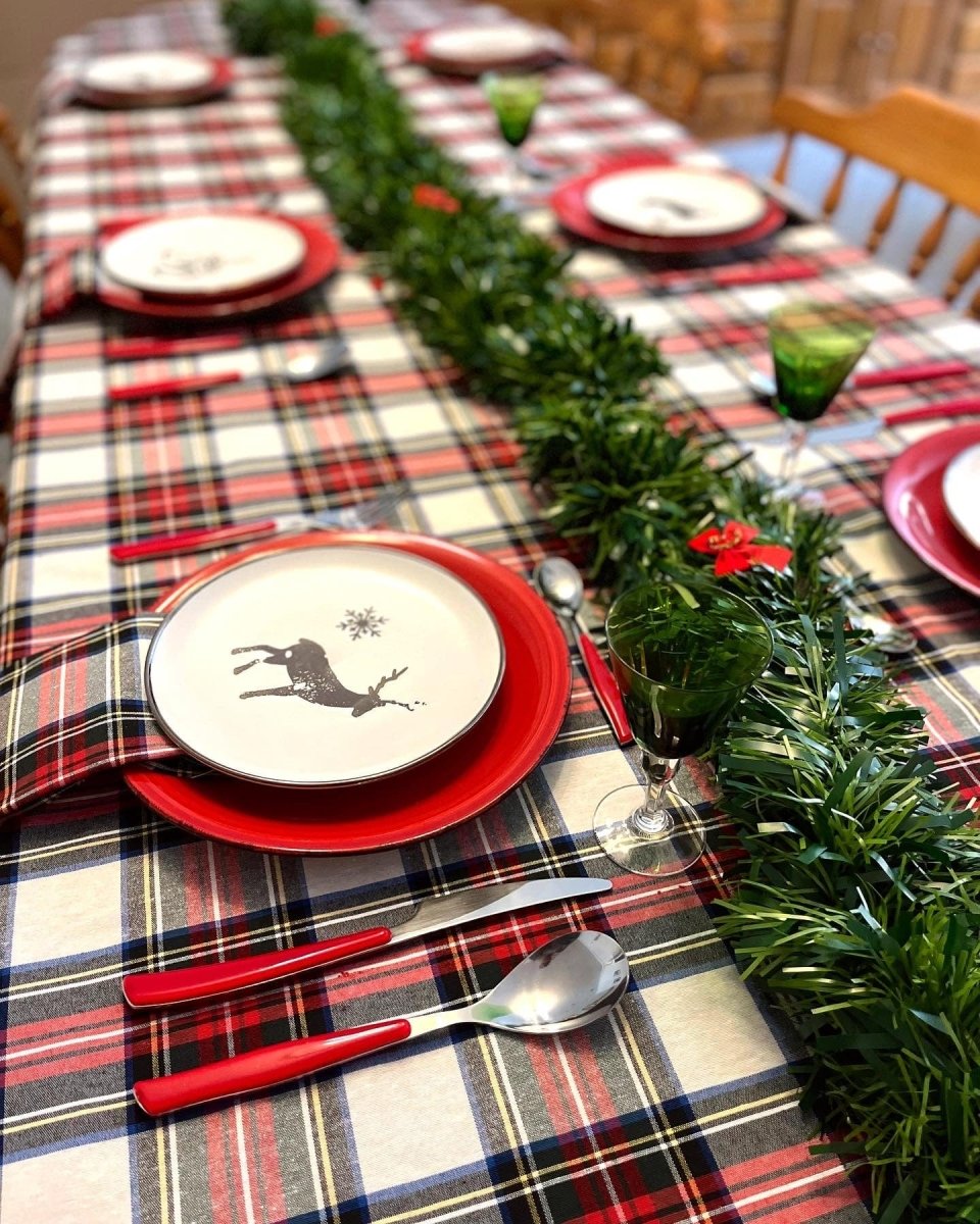 Découvrez la chaleur de la tradition écossaise avec notre Nappe Tartan Blanc Moyen - une invitation à la convivialité autour de votre table à manger.